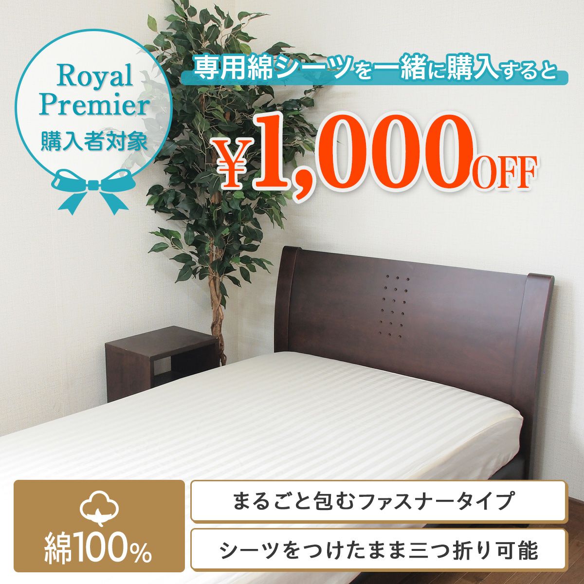 マットレス1台につき、綿シーツ1枚同時購入で¥1,000お得です!