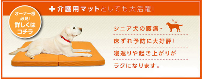 高反発素材なので、スプリングバネのように、ワンちゃんの体重を押し戻す力が働きます。 高齢で動きが鈍くなったワンちゃんでも、バネの力で、寝返りや起き上がりが楽になります。また、身体も動きやすくなり、床ずれ予防や身体への負担が気になるシニア犬オーナー様から特に人気です。