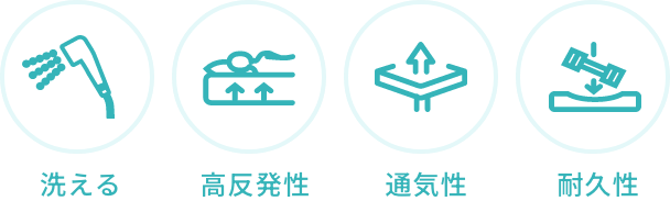 鉄道の座席や宿泊施設、介護やベビー用品などにも使用されており、中でも「洗える」「通気性」等、寝具に最適な機能は多くの方に評価されています。 -