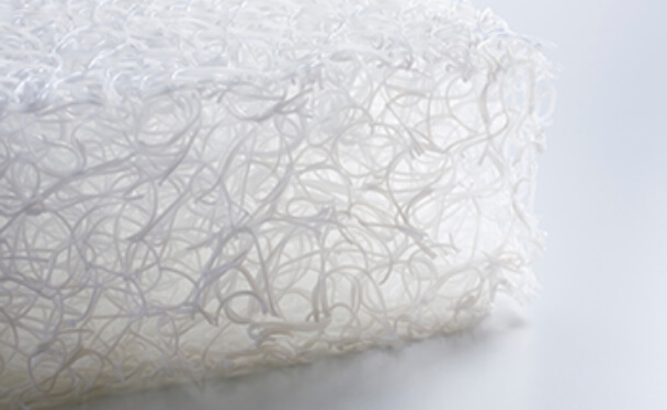 この三次元スプリング構造体『ブレスエアー®』は東洋紡が開発したクッション素材です。